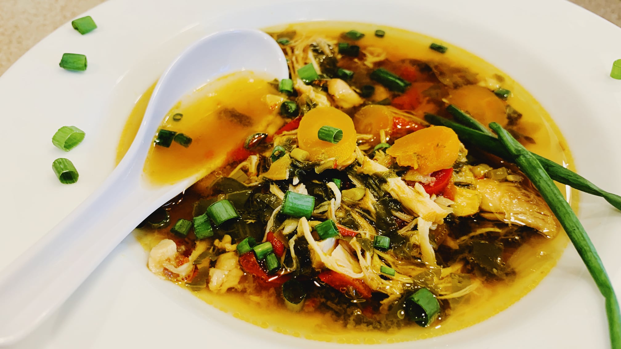 6. After cooking, release the pressure or let the soup stay warm until you’re ready to eat. Before serving, remove the whole white lemongrass stalks from the soup and discard. Take out the chicken, and shred it with two forks. Add the chicken back to soup. Serve with the reserved sliced green onions as garnish. Enjoy.