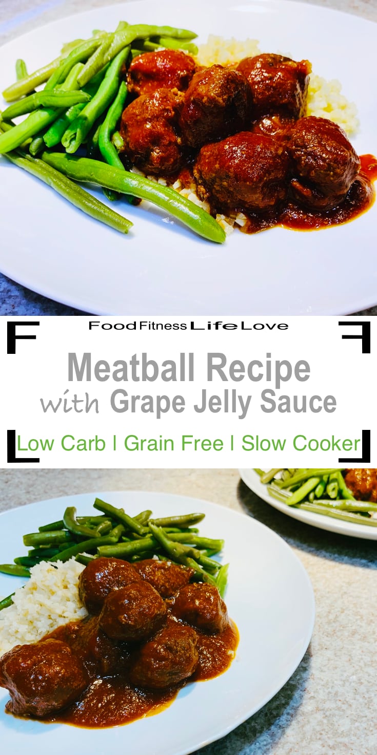 An easy kid friendly meal or tasty appetizer made in the slow cooker, this meatball recipe with grape jelly is sweet, savory, and low carb too.